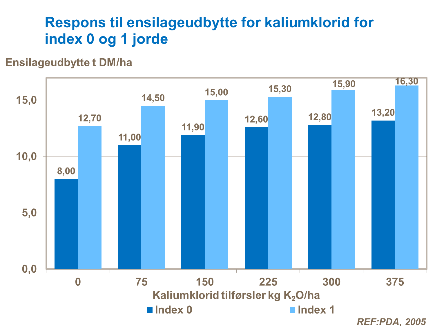 I forsøgene fra UK herunder ses kalium responsen på jorde med forskellig K-status.