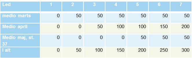 Hveden står nu de fleste steder i st. 31-32 så nu sker den kraftige strækningsvækst og behovet for kvælstof er på sit højeste. Det er derfor vigtigt at hovedtildelingen er givet nu. Vi gemmer stadig en restmængde til senere, der kan bruges fra s. 37 hvor det er nemmere at vurdere det samlede kvælstofbehov. Hvis tørken fortsætter (der er vand i prognosen i skrivende stund) vil der nogen steder nok være et mindre behov og der kan måske spares kvælstof. De fleste marker står dog på nuværende tidspunkt godt med et stort rodnet og udbyttepotentialet er stadig intakt. Kommer der nedbør af betydning vil der mange steder være mulighed for et højt udbytte og her bør man være opmærksom på at tildele kvælstof en tredje gang.