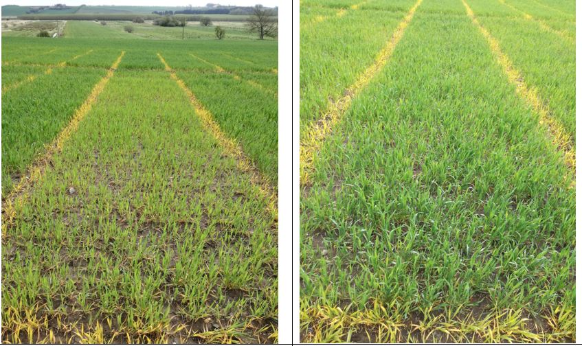 I Sønderjylland og på Lolland er vinterhveden kommet i gang med optagelse af kvælstof – og har optaget optil 30 kg N siden forrige måling. En tilførsel på omkring 150 kg N har indtil nu været tilstrækkeligt til at understøtte væksten. I stadie 37-45 vil der formentlig skulle tilføres yderligere kvælstof på disse lokaliteter.