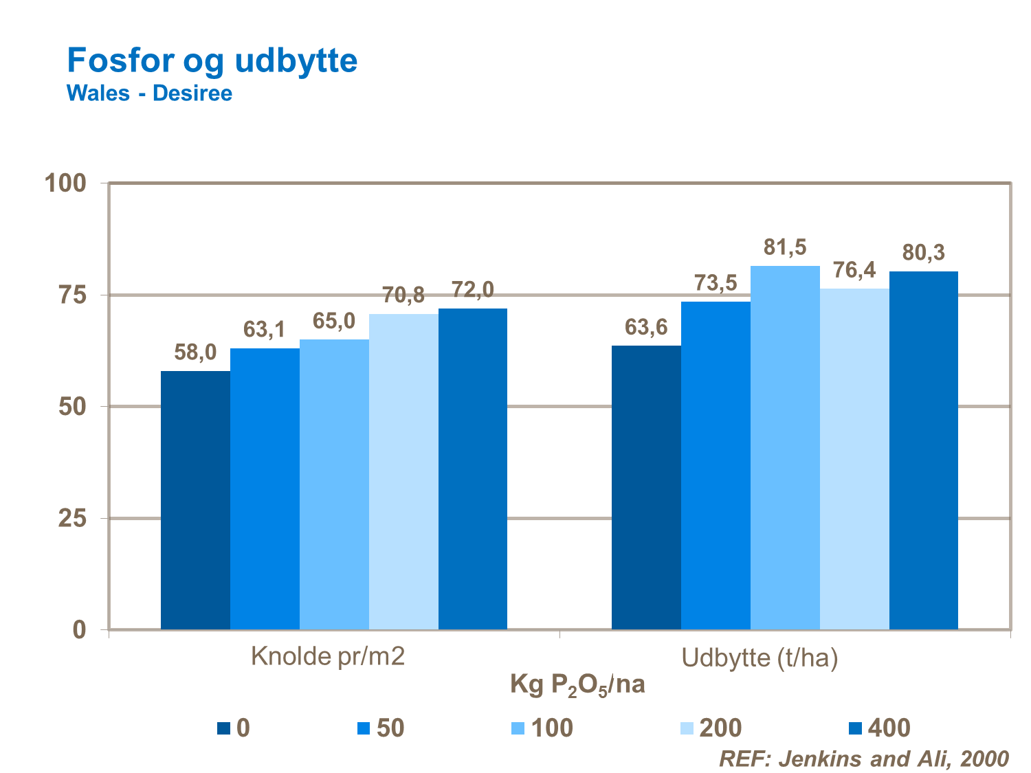 Forsøg fra England, som viser effekten i antallet af knolde som følge af hvilken form for kalium der anvendes i gødskningen.