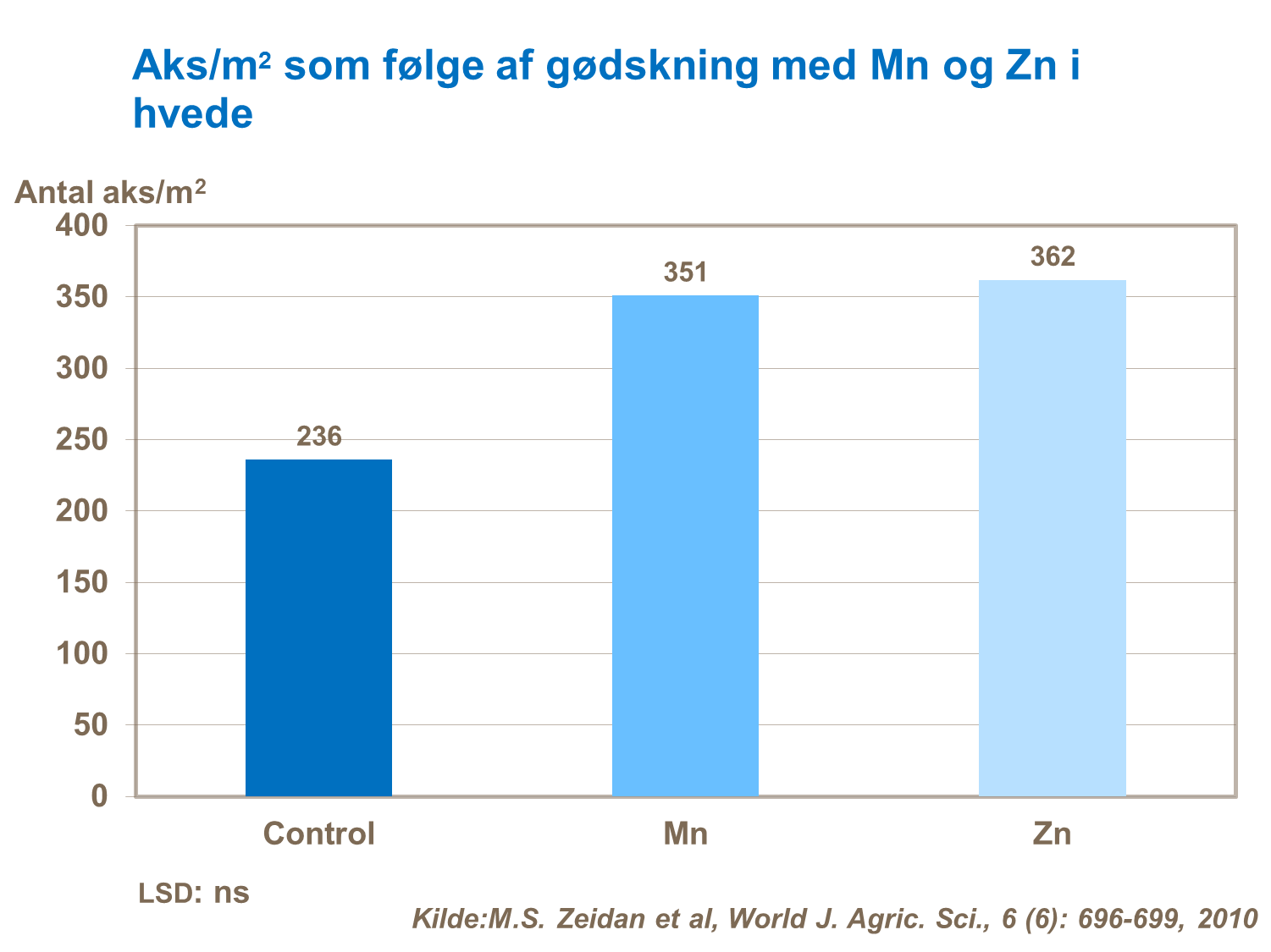 Mangan og zink er to af de vigtigste mikronæringsstoffer i hvede og begge har en indflydelse på hvedeplantens udvikling og udbytte. Herunder kan du se forskellige forsøg med Mn og Zn i vinterhvede.