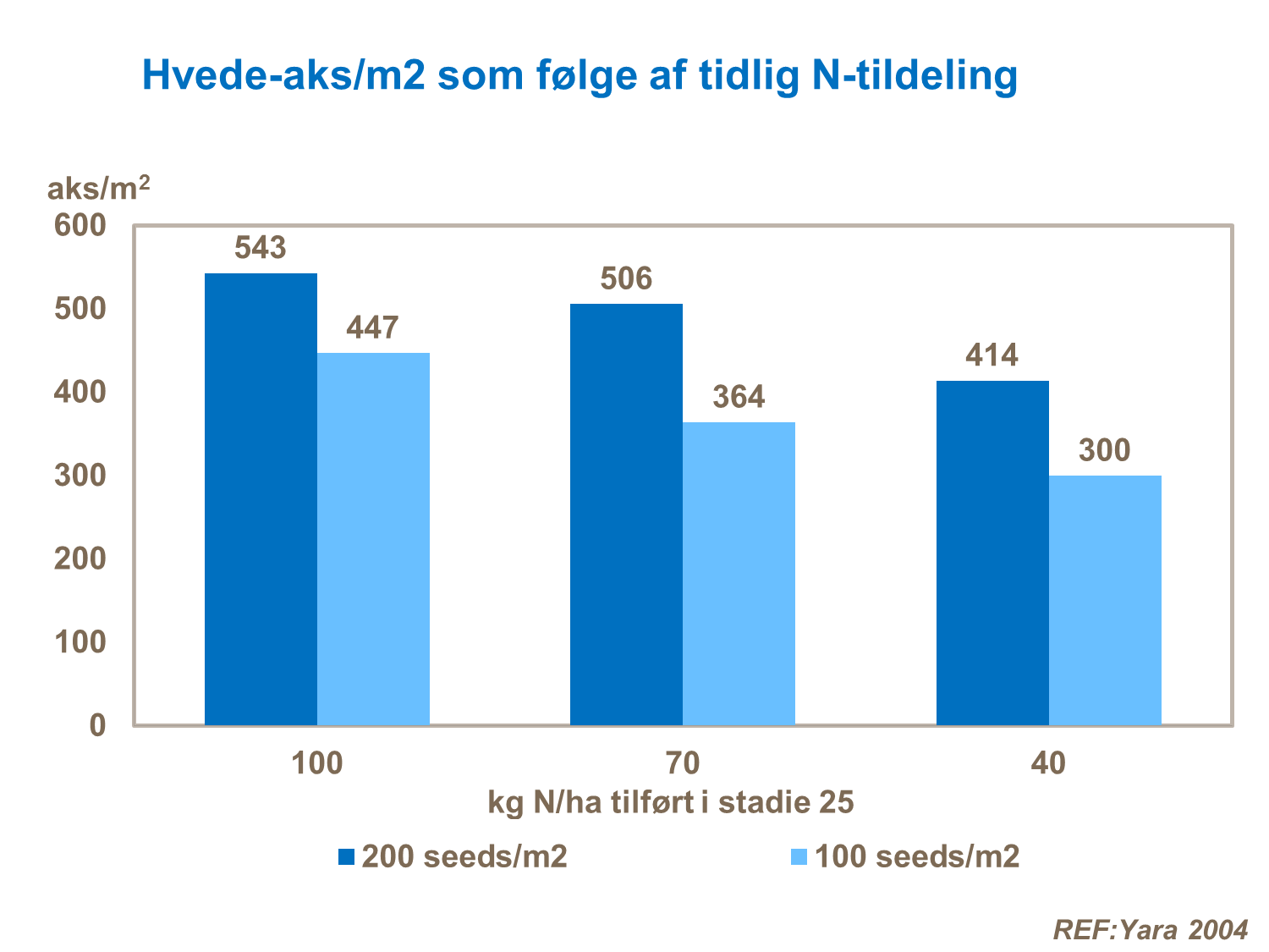 De steder hvor skud antallet er under det optimale kan brugen af størrere mængder kvælstof tidligt på sæsonen forhøje antallet af skud og dermed det endelig antal aks.