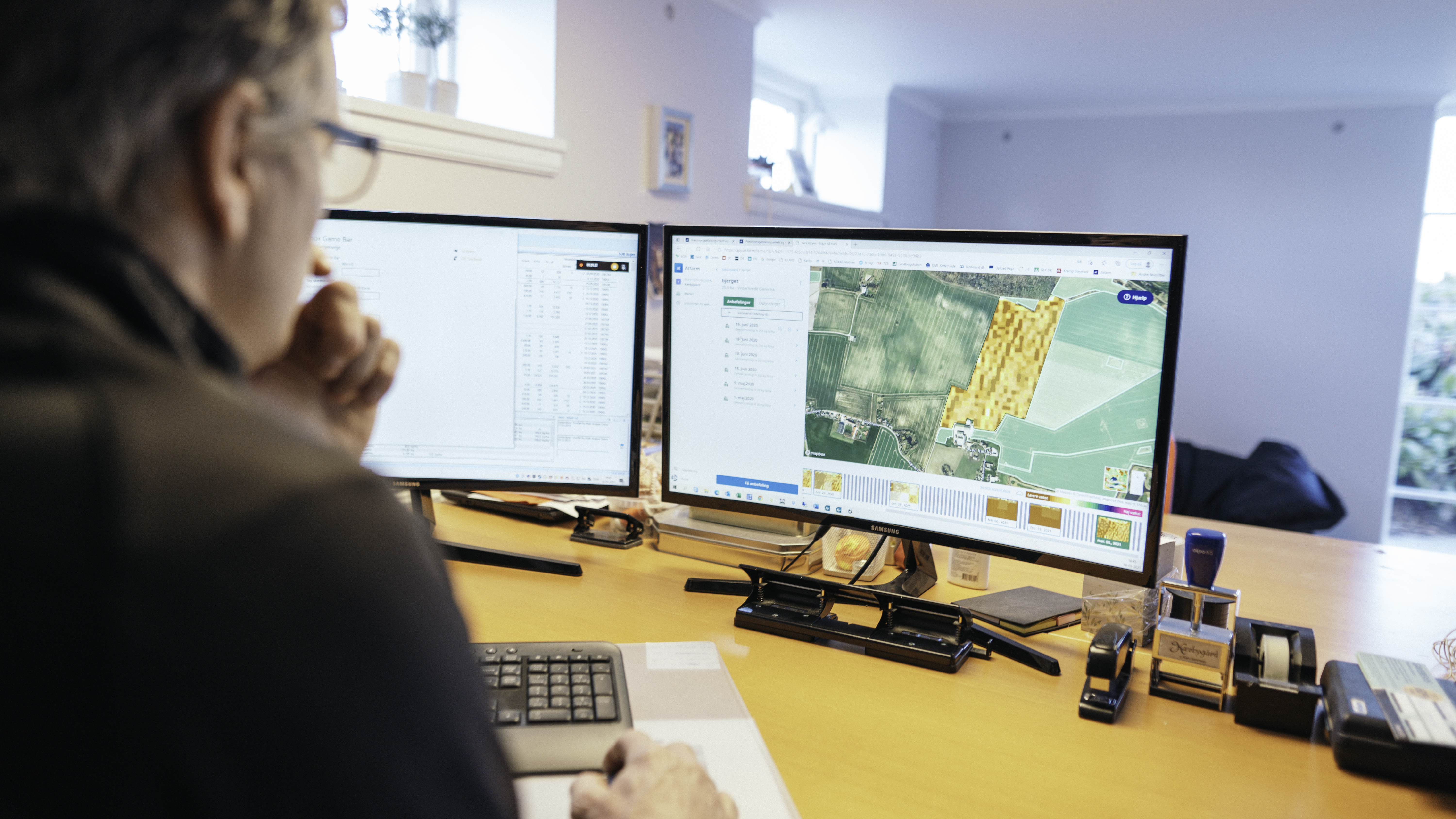 Det fortæller Hans Sørensen om bedriftens anvendelse af teknologi, der bl.a. tager udgangspunkt i Yaras præcisionsgødskningsværktøj Atfarm. Den satellitbaserede tjeneste illustrerer markernes varierende biomasse ved hjælp af satellitfotos. På den måde skaber Atfarm et let anvendeligt datagrundlag, der via algoritmer baseret på N-Sensor-teknologien omregnes til et tildelingskort for gødningsspredningen.
