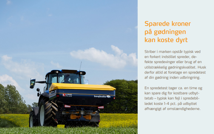 Gødning er som traktoren en investering, som du foretager på din bedrift. Investeringen starter med dit køb af gødning hos din grovvareforhandler. I foråret aktiverer du din investering, når du spreder gødningen på marken, og i sensommeren realiserer du så din investering, når du høster og sælger dit korn. Hvor godt ”afkastet” bliver i din mark, afhænger af flere faktorer, men gødningen spiller en stor rolle i det regnskab. Særligt to faktorer ved gødningen spiller ind på afkastet i marken: Gødningens spredekvalitet og dens indhold af næringsstoffer.