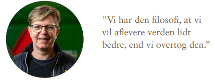 ”Vi vil ikke være sure og gamle landmænd, der ikke kan se det gode i det nye. Derfor tager vi altid de unge medarbejdere med på råd om investeringer”, siger Gert Iversen, og Annette Dam supplerer: ”Der kommer jo en dag, hvor vi skal kigge på nye partnere i vores fællesskab. Det skal ske, mens vi også har noget at byde ind med over for de unge, så vores erfaring bliver et aktiv. Men det er de unge mennesker og deres gode idéer, der skal sætte retningen for fremtiden på bedriften.”