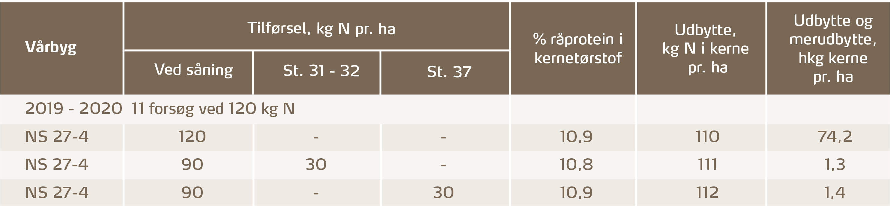 Oversigt over Landsforsøg 2020, SEGES. (Dette ses også i 16 forsøg i vårbyg fra 2004 – 2007. Oversigt over Landsforsøg 2007, SEGES)