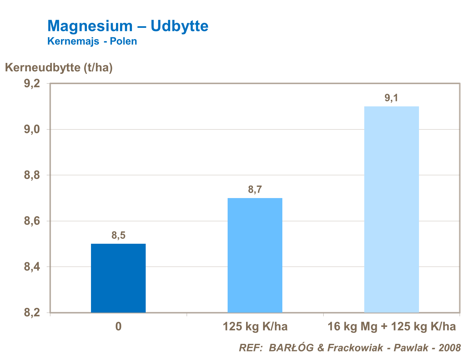 Zink giver den største udbytterespons i det største antal forsøg. Den største respons ses når zink tilføres via startgødning, idet zink især har effekt på den tidlige rod- og skududvikling og den heraf forøgede bladudvikling. Derudover kommer høje udbytteresponser også når bladgødskning benyttes direkte på bladene.