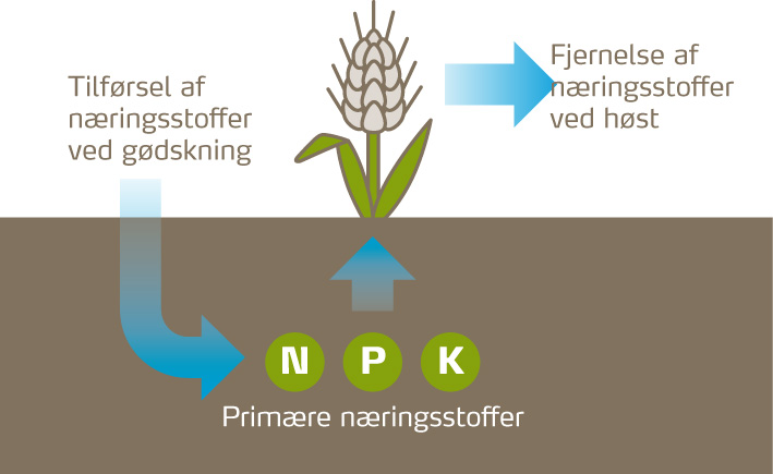 Siden det 19. århundrede, hvor Justus von Liebig formulerede "Minimumsloven", har vi vidst, at hvis planterne mangler et næringsstof, vil dette begrænse planternes vækst selvom alle andre næringsstoffer er tilstede. Tilføres dette næringsstof vil væksten øges, indtil et andet næringsstof bliver den begrænsende vækstfaktor.Hver gang der høstes, fjernes næringsstoffer fra marken. Handelsgødninger tilføres med det formål at erstatte de manglende næringsstoffer og derved sikre en optimal og afbalanceret plantevækst uden at tære på jordreserverne. Set fra et klimaperspektiv er kvælstof (N) det vigtigste næringsstof, mens fosfor (P) og kalium (K) har mindre betydning.