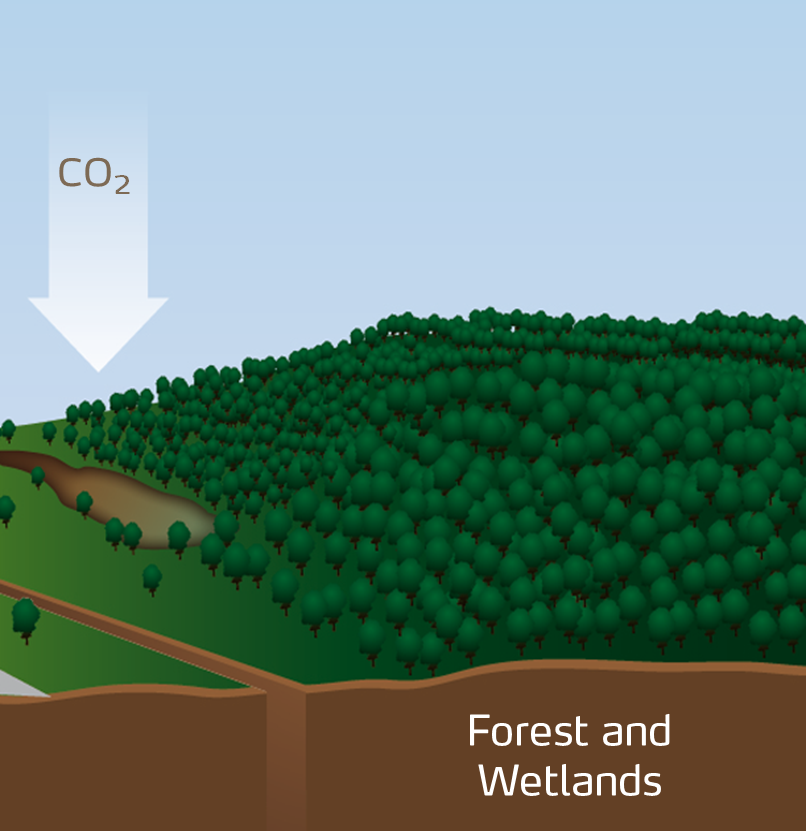 Forests and wetlands store 2-8 times more CO2 than croplands. Land use change, mainly due to burning of tropical forests, is a large source of CO2 emissions, accounting for 20% of manmade CO2 emissions. Preserving tropical and boreal forests is the most important contribution to mitigate climate change.