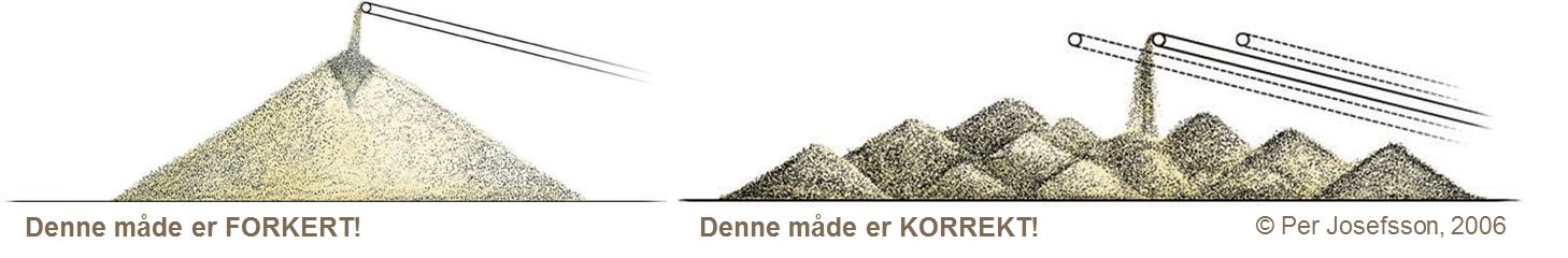 - Undgå spild når bunken genopbygges med en frontlæsser: overfyld ikke skovlen og undgå at køre ind i bunken.