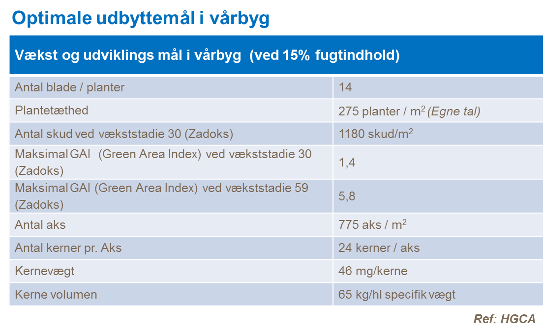 Ved etablering af vårbyg er det vigtigt med i omegnen af ca. 275 - 300 planter pr./m2, da vårbyg har meget svært ved at kompensere for et lavt planteantal.