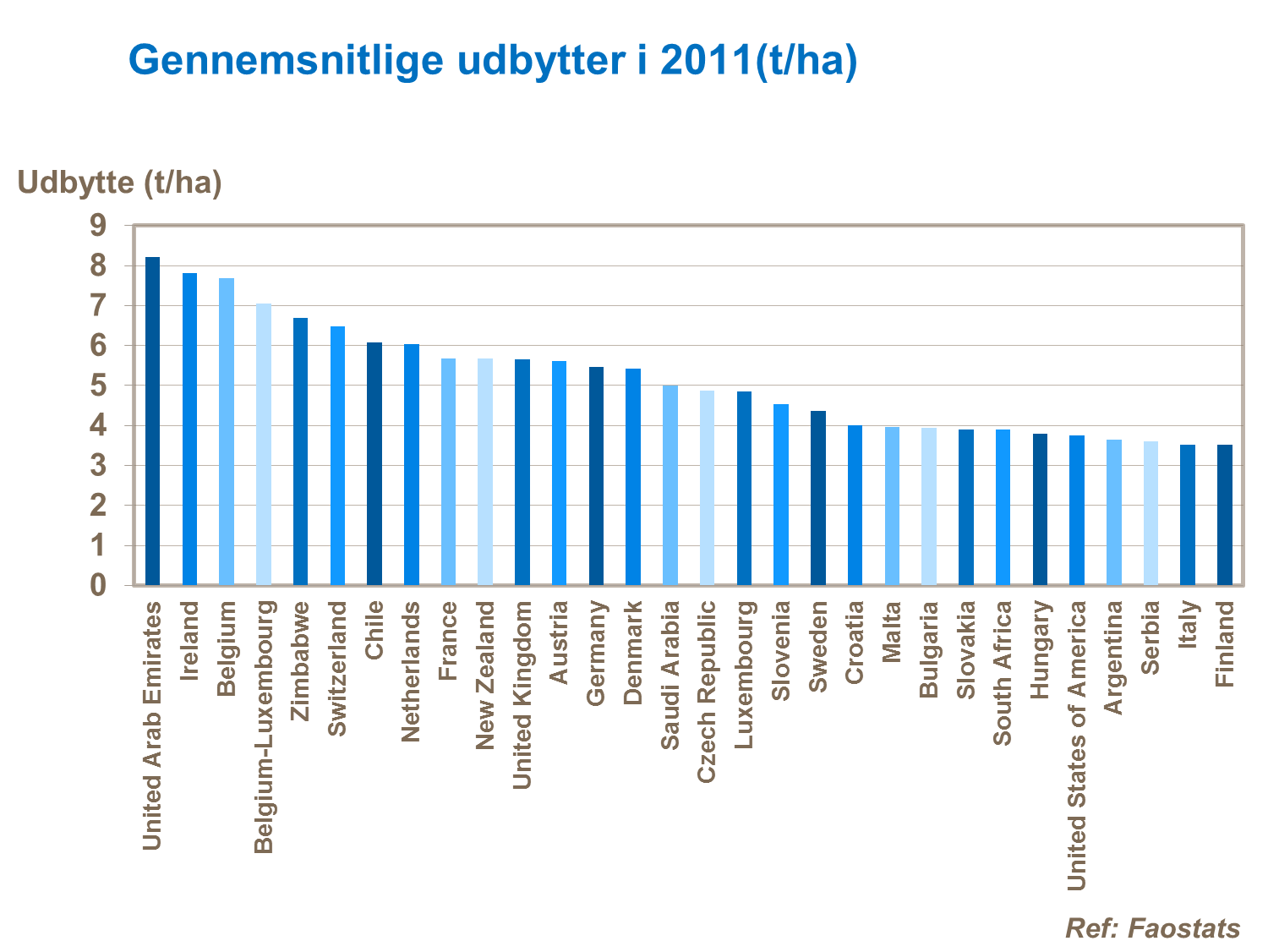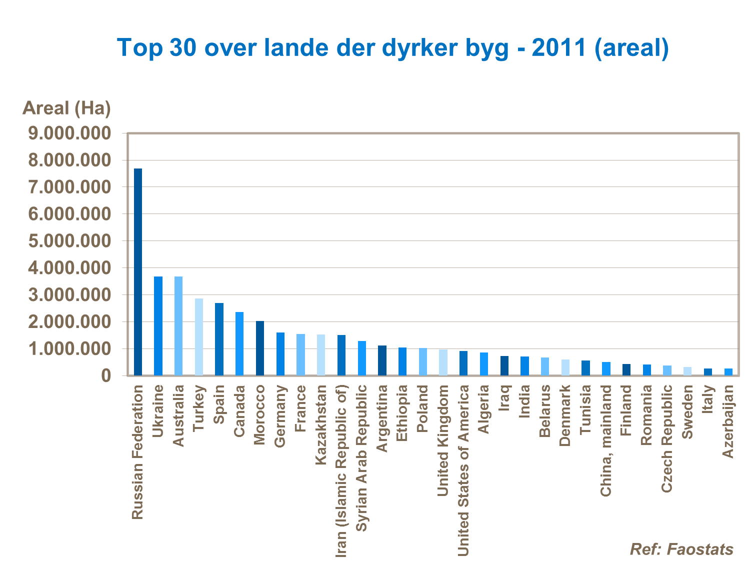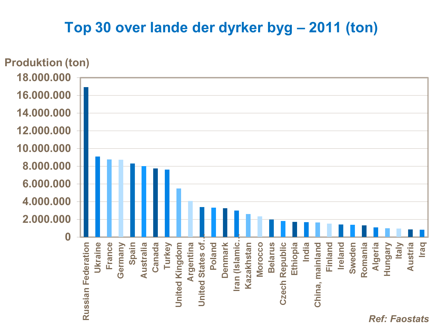 Hvis produktionen udregnes i volumen i stedet for område, er Rusland og Ukraine stadig i front, mens Frankrig og Tyskland kommer ind på tredje og fjerde pladsen.