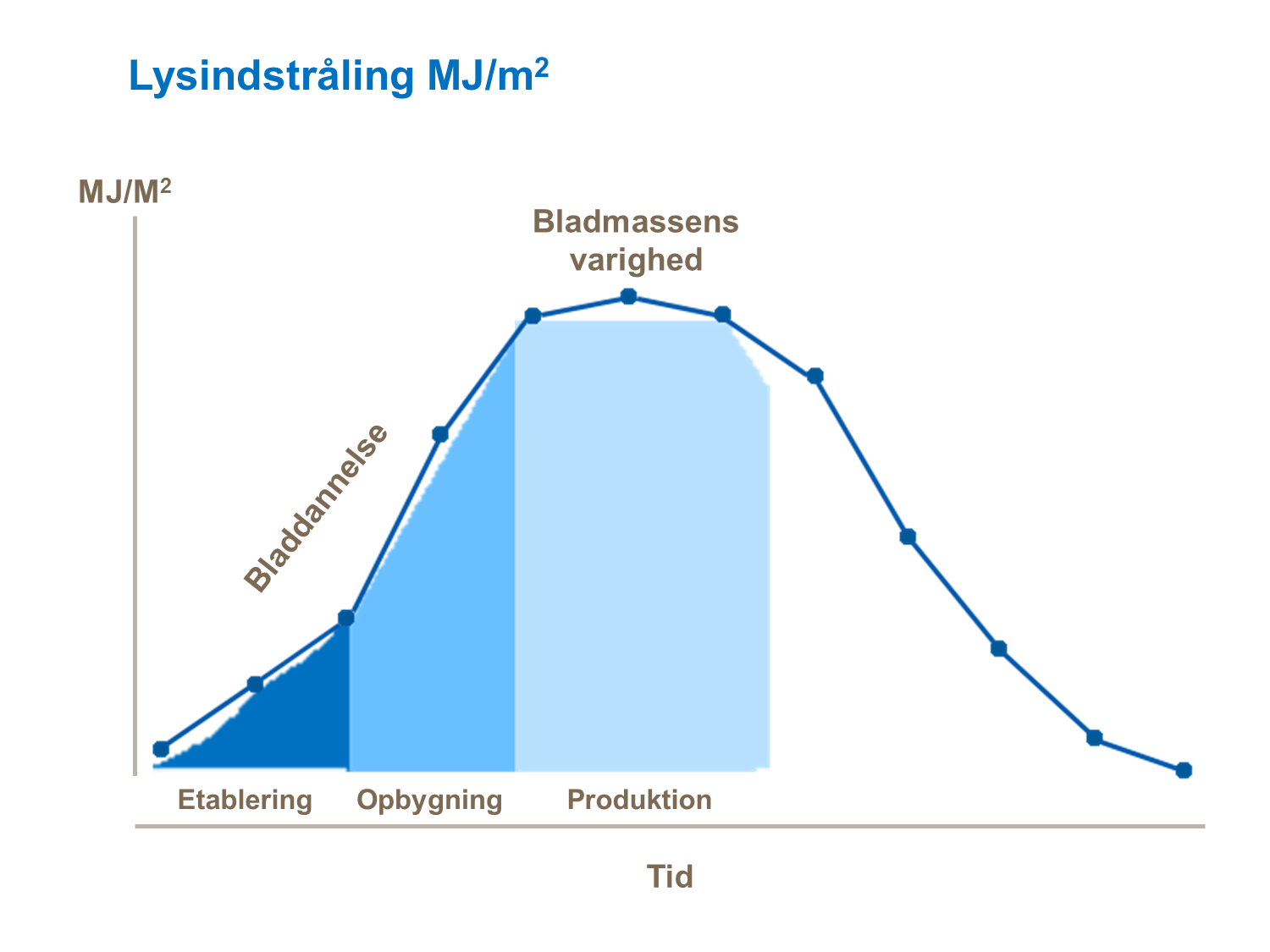 Disse simple forhold er grundlaget hvorfra vi udvikler vores agronomiske principper inden for dyrkningen af vinterbyg. For at kunne indsamle strålingen skal vi udvikle en tilpas stor bladmasse (som heller ikke bliver overdrevet stor) af sunde grønne blade til at indfange 90 % af den indkommende stråling. Bladmassen skal holdes grøn og sund til kernefyldningsfasen. Derfor er der to særlige mål: