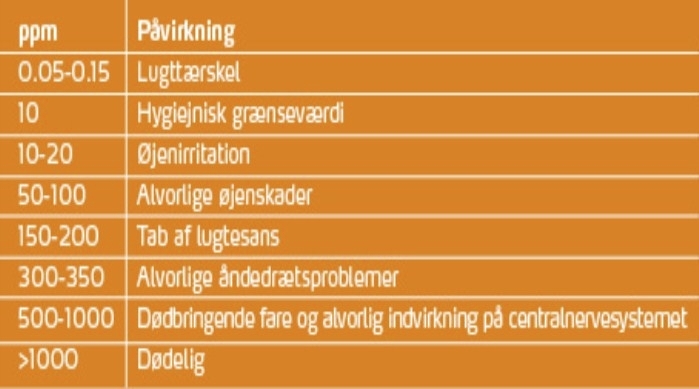 | Svovlbrinte er et meget bredspektret giftstof. Det angriber og lammer nervesystemet og blokerer for den såkaldte aerobe respiration. I høje koncentrationer er en enkelt indånding dræbende. |
